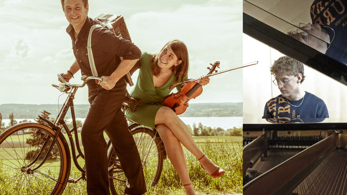 Während Johann Zeller im einen Moment innig mit seinem Akkordeon verschmilzt und kurze Zeit später groovig auf ihm herum trommelt, entlockt Marie-Josefin Melchior ihrer Geige verschiedenste Klangfarben von arabischer Rabab bis hin zur E-Gitarre.