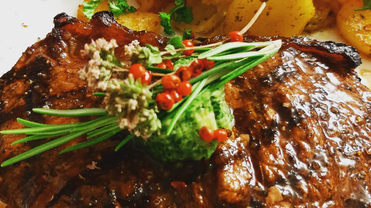 Bestes vom Rind inklusive Beilagen und Salatbar.